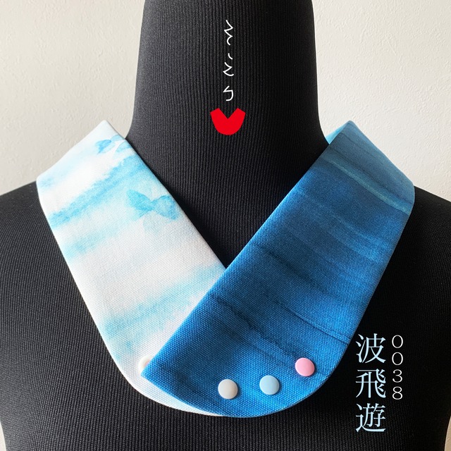 0038「波飛遊」そえり 水辺の清らかさを描いてみました ーーーーーーーーーーーーーーーー 着物に直接添える衿〔そえり〕です ーーーーーーーーーーーーーーーー 着物を着る楽しみのひとつとして〔そえり〕を作りました ・ とてもシンプルです スッキリしているのでお洗濯をするのも仕舞うのも簡潔です ・ 浴衣を着るように着物1枚を羽織って衿を抜いて着る その着物に添える衿が〔そえり〕です 小さなクリップ4個で着物に留め付けたら ゆったりと衿を抜いて着物を着てください 下着は好きなもので たとえばうそつき袖を付けた肌着 たとえば汗とり肌着 たとえば補整肌着 肌着のこだわりポイントは人それぞれだと思います 好きな肌着で心地よく 好きな着物に〔そえり〕を添えてください ーーーーーーーーーーーーーーーー 1枚で幅広いサイズとイメージに対応! ゆったり熟れた衿元にも きちんと詰めた衿元にも ◯白スナップ(ゆったり熟れ感) ◯ブルースナップ(すこし小さくキリッと) ◯ピンクスナップ(もっと小さくキュッと) 左右の同じ色どうしのスナップを1箇所とめて 衿合わせ角度や衣紋の抜き加減は着物にあわせて自由にできます スナップは3サイズ基本的に角度自由ですけれど 白とブルーをとめる ブルーと白をとめる この2箇所をとめてゆったりイメージに固定することも出来ます 白地コットンのオックスフォード生地は畝のようにみえて趣があります 季節を問わずご使用いただけるかと思います 表生地/綿100% 裏生地/綿100% 芯/ポリエステル100% 芯入り形成済み クリップ4個付き 【ご購入前にご確認ください】 ・中央2箇所のクリップは着用時お体に触れることはありません。外側2箇所は留めたほうが安定しますが、もし肌に触れて気になる場合は留め位置を少し内側にずらしてご使用ください。 ・制作は一人で手作業にて行っておりますため、わずかな歪みや微妙な個体差が生じる場合がございます。 ・天然繊維のため、ネップや筋が見られる場合がございます。また、染色工程上、ごく小さな色ムラや色飛びが生じることがございます。 ・ご家庭でも使用されるようなアイロン等の道具を使って制作しております。仕上げの際に若干の皺が残ることがございます。 ・バチ衿の場合や金属に抵抗がある場合はクリップを使わずに軽く縫い留めるか半衿用両面テープをご自身の判断でご使用ください。 ・長襦袢に付ける場合は、〔そえり〕をかぶせるように長襦袢の衿にのせて、外側を軽く縫い留めてご使用ください。〔そえり〕の折り目がカーブしているので少しコツが必要かもしれません。スナップ留めは出来ませんけれど、衿芯不要で外側だけを縫い留めておけば〔そえり〕を折って使用出来ます。ただ、長襦袢の衿幅が〔そえり〕より広い場合は長襦袢の衿が衣紋から見えてしまいます。 ・お洗濯はなるべく手洗いで脱水は極短時間にしてください。干すときや仕舞うときは裏面を外側にしておくと着用時お体に添いやすいです。 ・保管時にわたしの好きな香りの匂い袋を入れているため、ほのかに和の香りが移っている場合がございます。